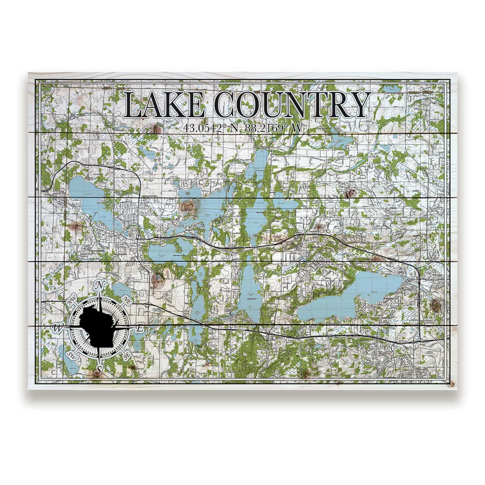 Lake Country Waukesha County Wisconsin, Wood Sign Map Art – Lakebound®