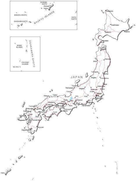 Japan Black & White Road map in Adobe Illustrator Vector Format