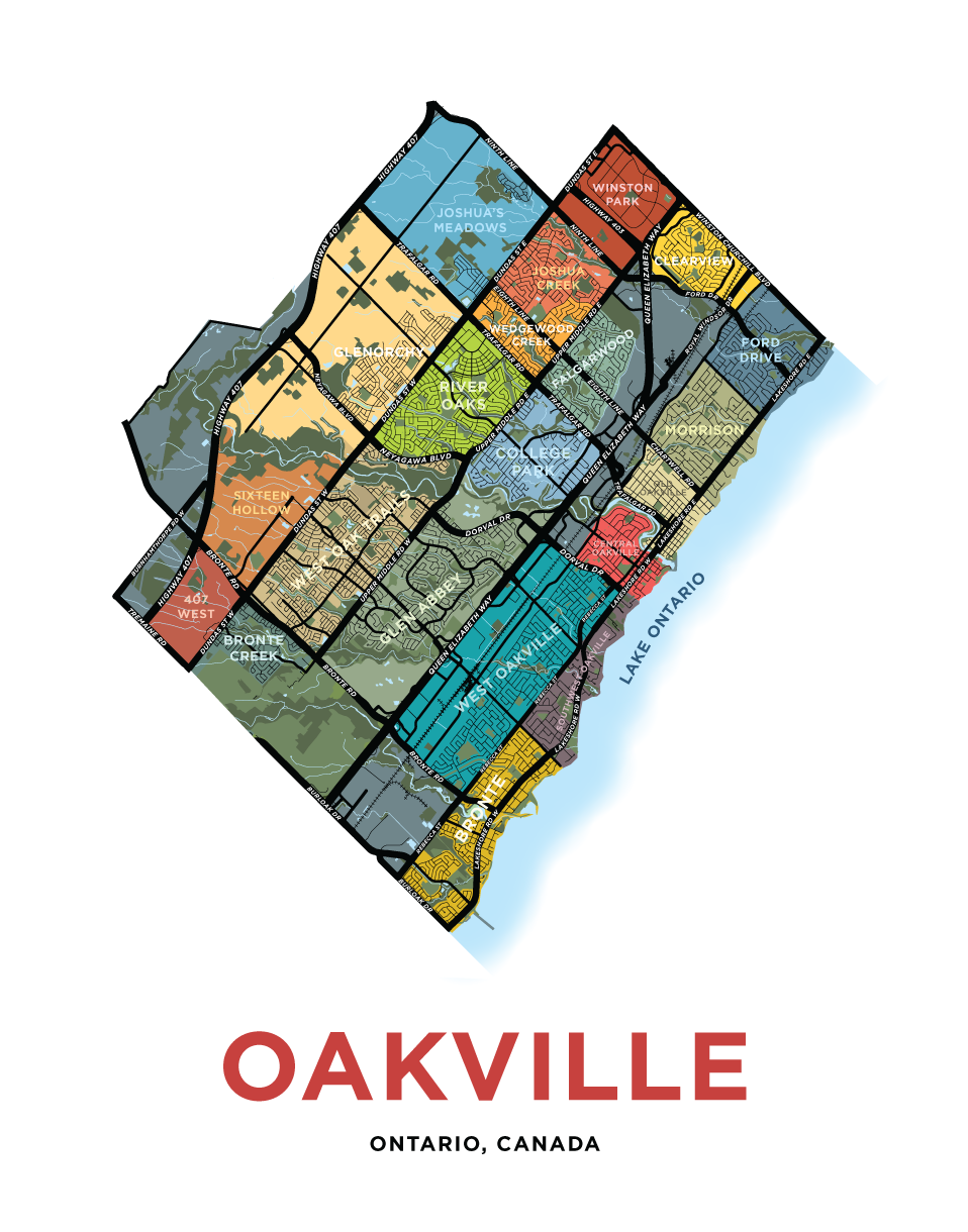 Oakville Neighbourhoods Map Print – Jelly Brothers
