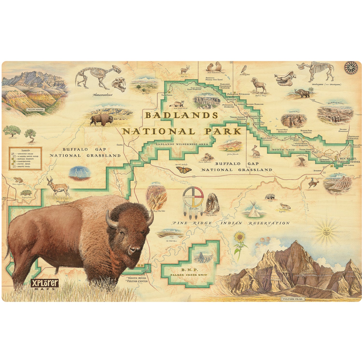 Badlands National Park Hand Drawn Map | Xplorer Maps